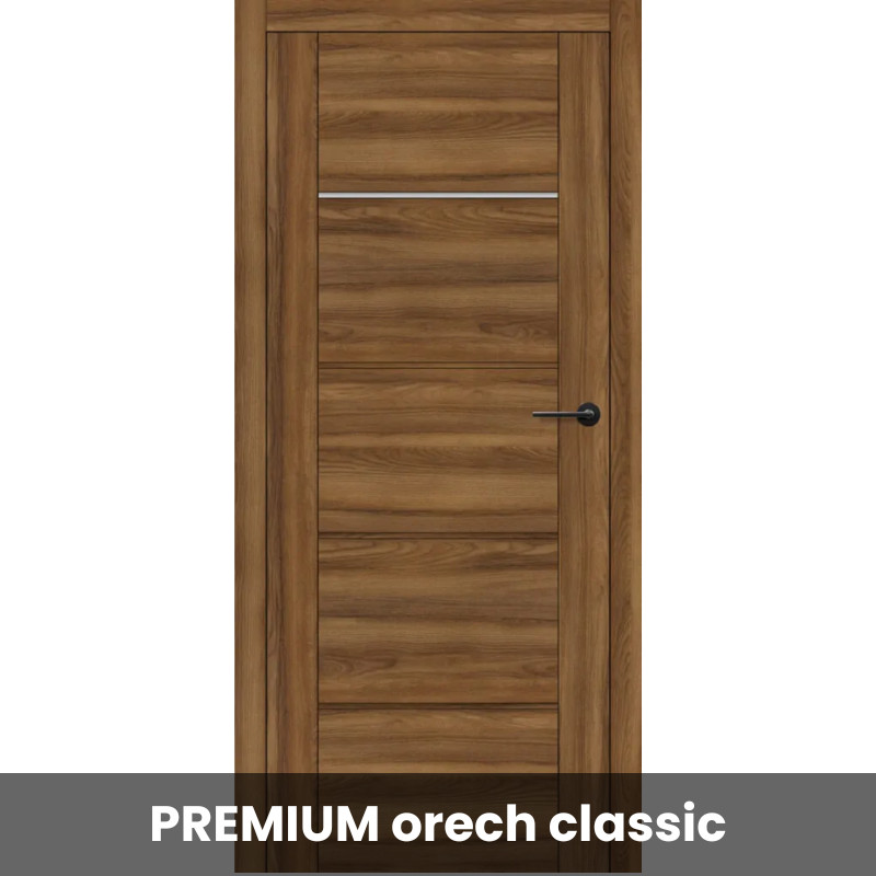 Bezfalcové rámové dvere ERKADO LAURENCIA 3 sú zhotovené z dvoch zvislých rámov a hornej, spodnej a stabilných priečnych dosiek. Výplň dverného krídla je zhotovená z panelov a skla s hrúbkou 4 mm. Pri tomto type dverí sa sklenená výplň neprichycuje pomocou okenných líšt, ale pomocou konštrukčných komponentov, čo výrazne zlepšuje ich stabilitu. Dvere Laurencia dodávame v akciovom komplete dvere + zárubňa a sú dostupné v povrchovej úprave Premium a CPL.
