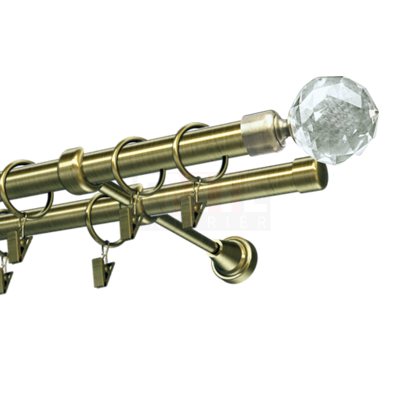Kovová garniža 25 mm, jednotyčová Guľa Kryštál antik