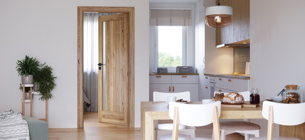 Rámové falcové dvere z kolekcie PORTE VERTE HOME M sa vyznačujú jemne presklenými dverami, ktoré vám umožňujú opticky zväčšiť miestnosti a zároveň zachovať súkromie. Matné sklo prepúšťa svetlo a rozmazáva siluety postáv skrytých za ním.